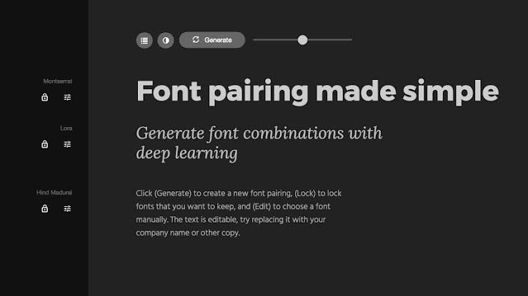 This AI tool helps the designers to choose the best font combinations. It allows you to mix and match different fonts for the perfect pairing with your overall design and the theme. This AI tool has solved the problem of designers deciding which font color will go for what theme and design.